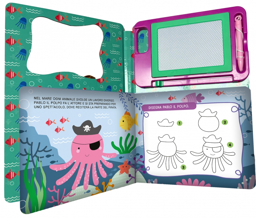 mano la penna magnetica e disegna tutti i protagonisti della storia."